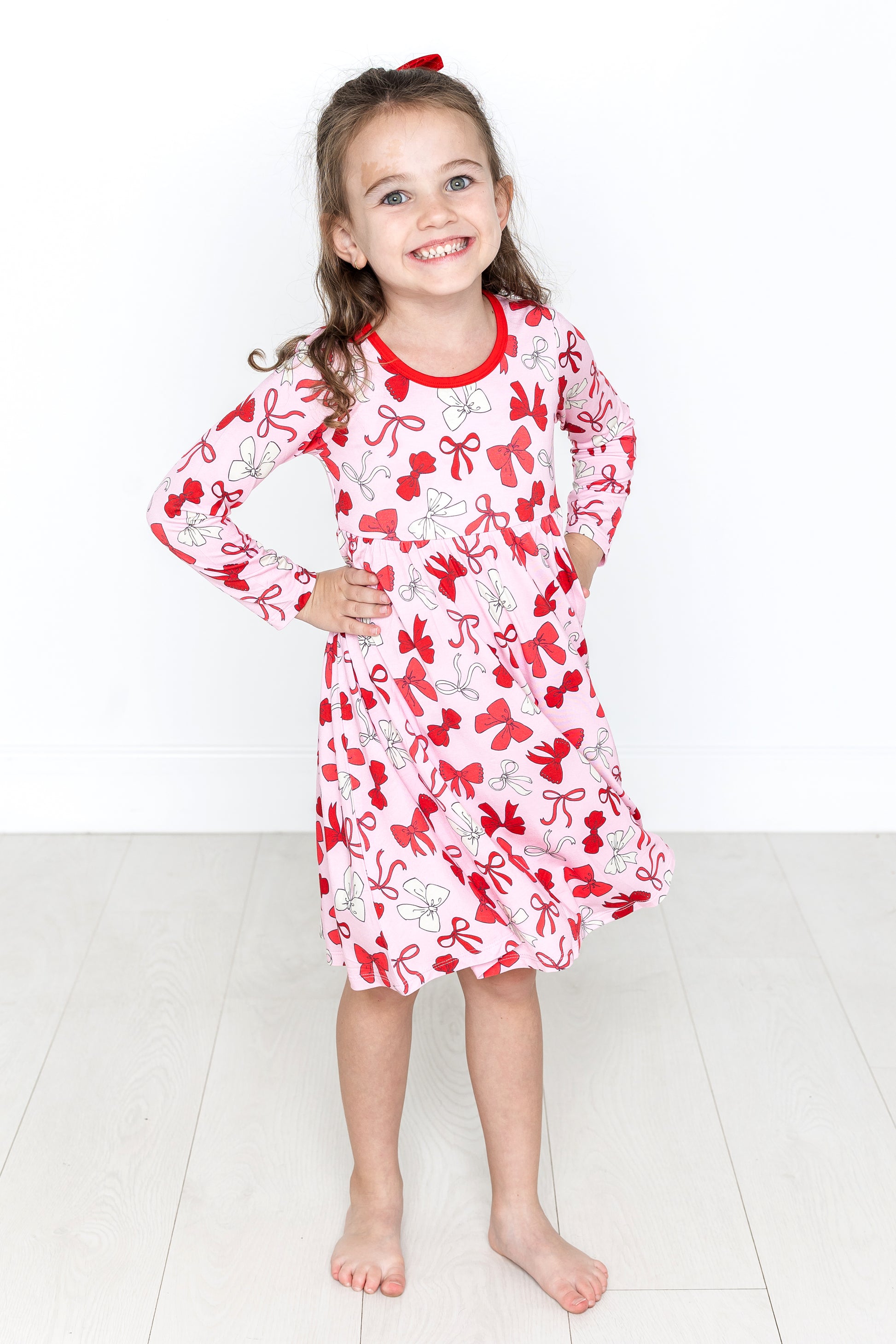 Red Bows Long Sleeve Twirl Dress